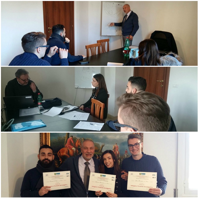 Nel weekend si è poi concluso con successo il Corso in Indagini e Tecniche Investigative: sotto le preziose indicazioni del Mar. Quaresima e dal Dott. Marchet, i corsisti hanno preso parte all’ultimo appuntamento del percorso formativo, con una lezione pratica sulle Tecniche di pedinamento mediante l’utilizzo di apparecchiature elettroniche, ed inoltre – nell’apprendere le modalità di relazione dell’attività svolta – si sono cimentati in una prova pratica al termine dell’attività di Osservazione, Controllo e Pedinamento.