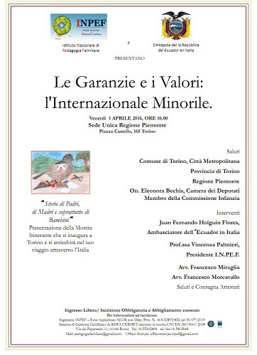 conoscete l’amicizia che lega l’Istituto Nazionale di Pedagogia Familiare alle Famiglie e ai Bambini dell’Ecuador, così come la collaborazione che il Gruppo di Lavoro Integrato per la Tutela dei Bambini Ecuadoriani in Italia ha intessuto con le Istituzioni ecuadoriane. E’ per questo che facciamo appello alla vostra solidarietà.